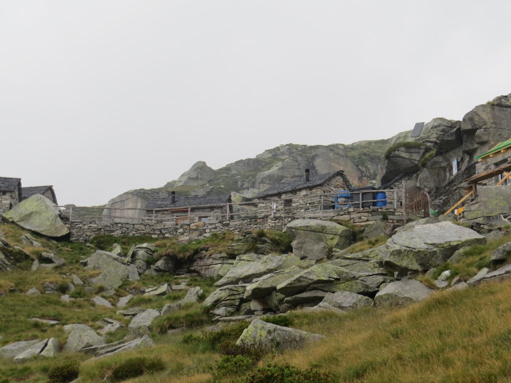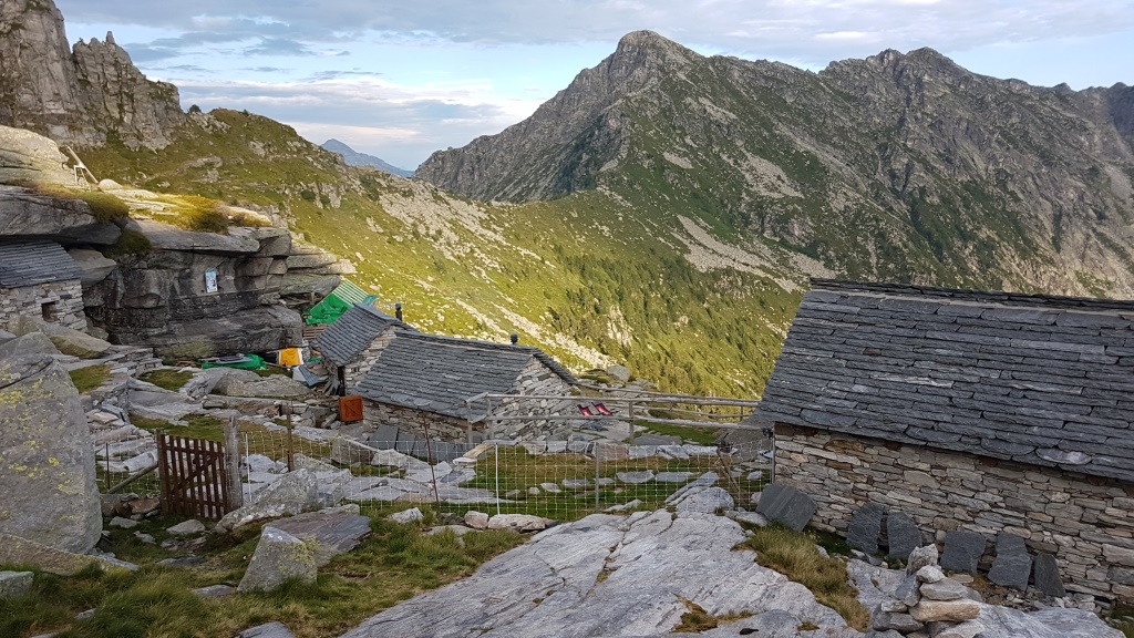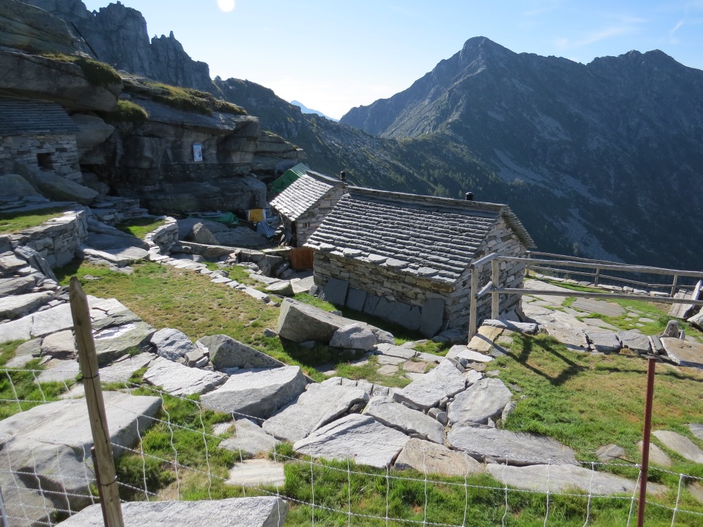 Blick zu den sehr schönen Hütten vom Rifugio Alpe Masnee, wo wir übernachtet haben
