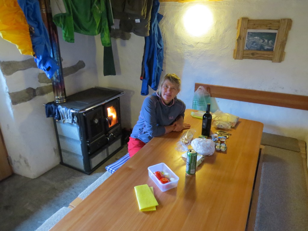 im Aufenthaltshaus wir der Ofen angefeuert und bald ist es angenehm warm, und die Kleider können trocknen