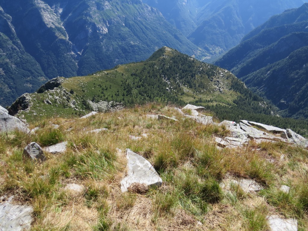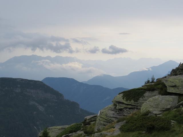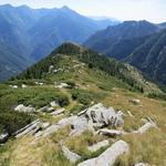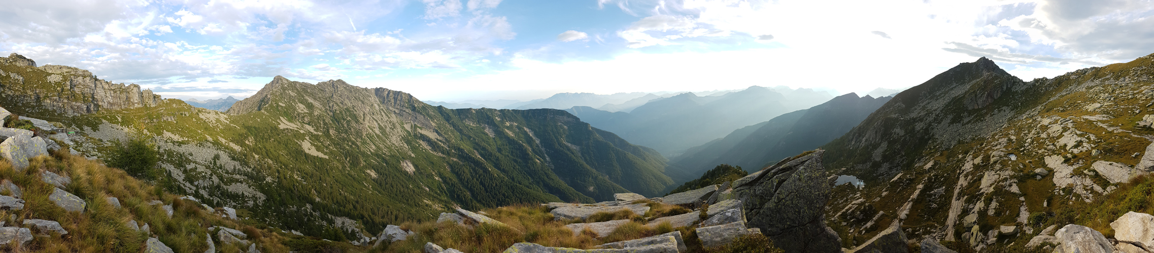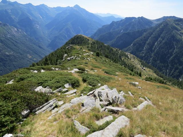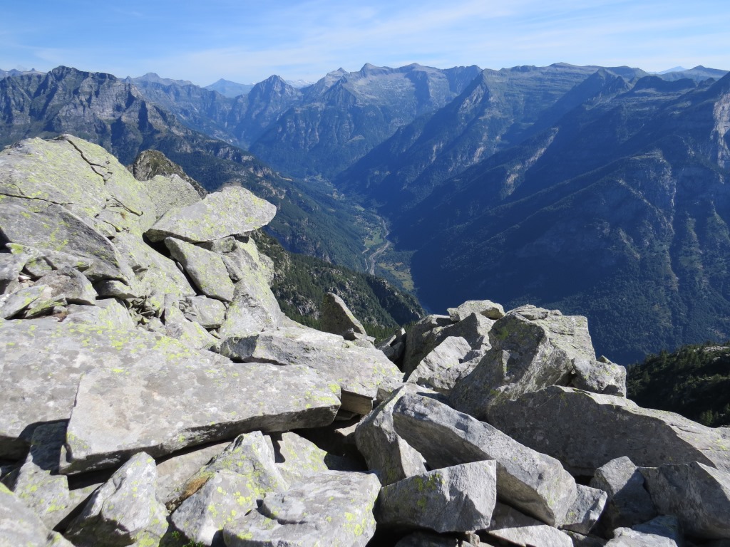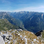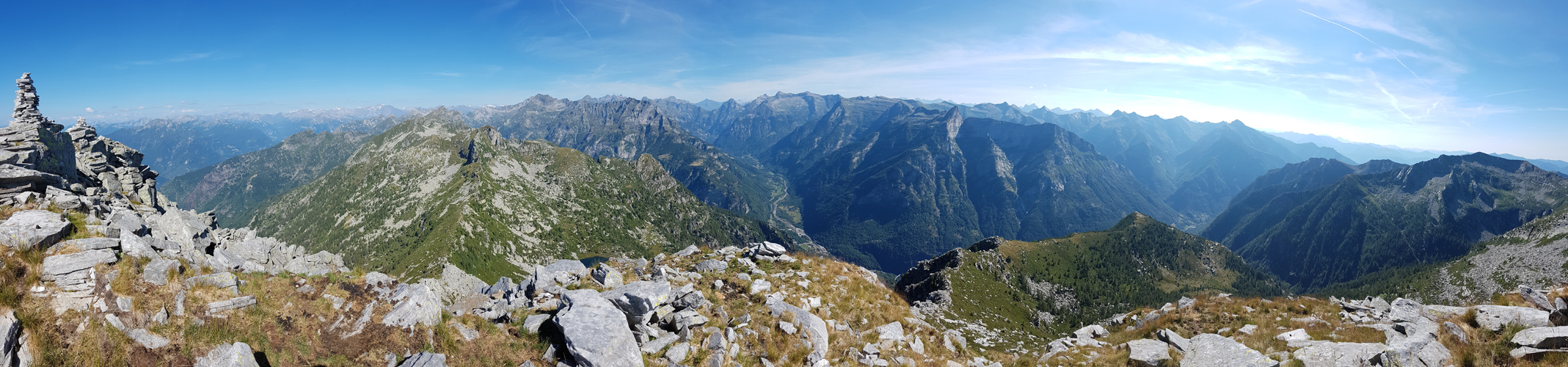 sehr schönes Breitbildfoto vom Grat aus aufgenommen, mit Blick Richtung Valle Maggia. Ganz links der Madom da Sgióf
