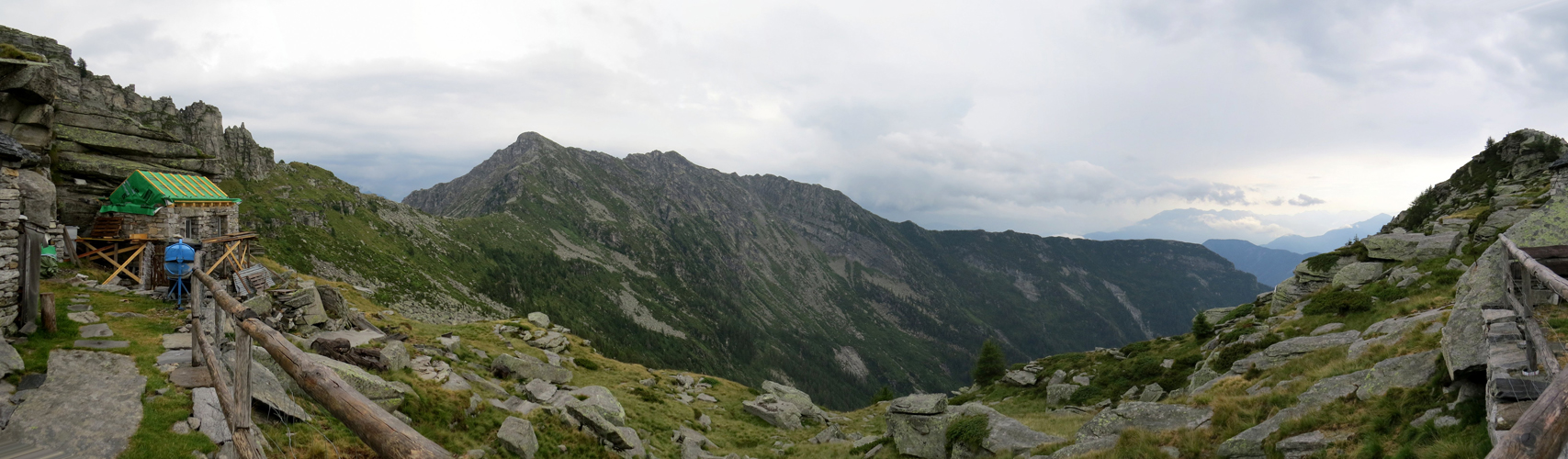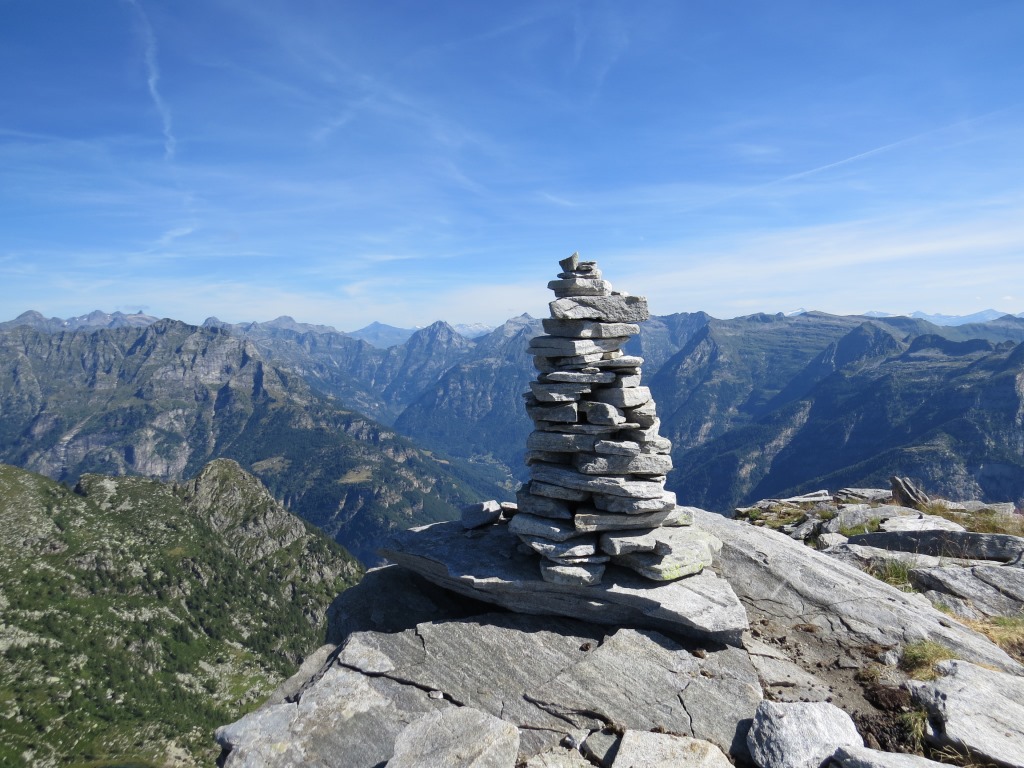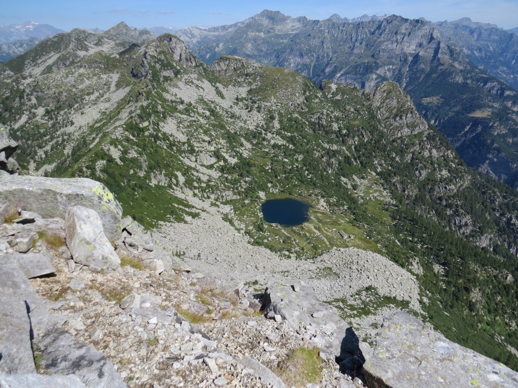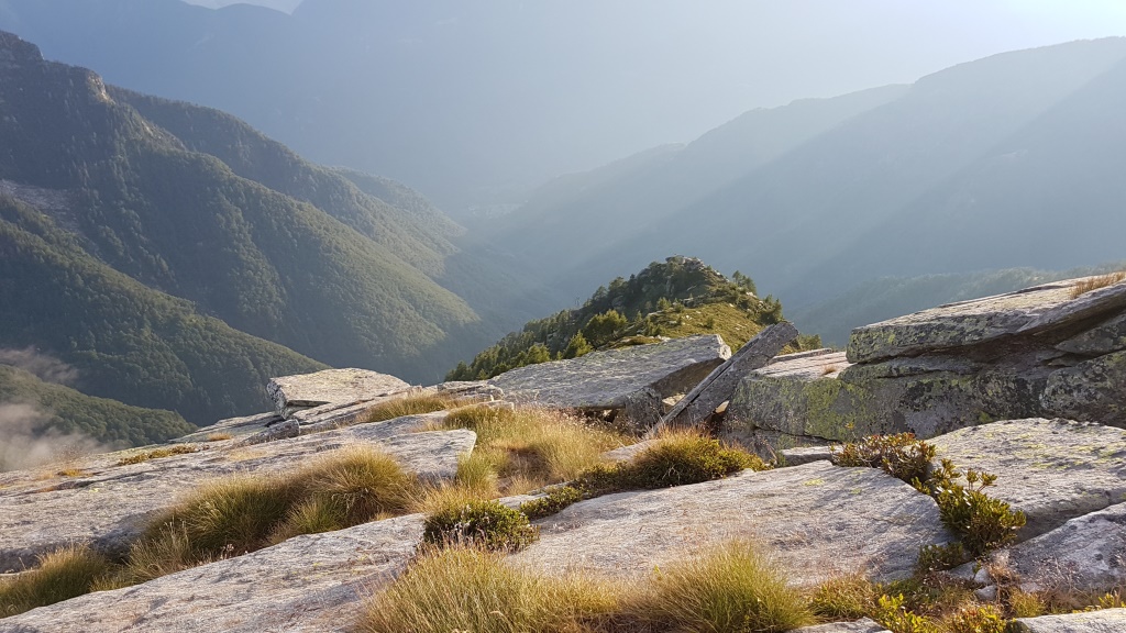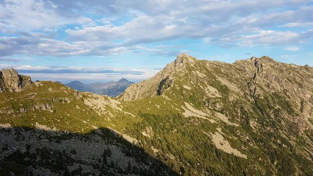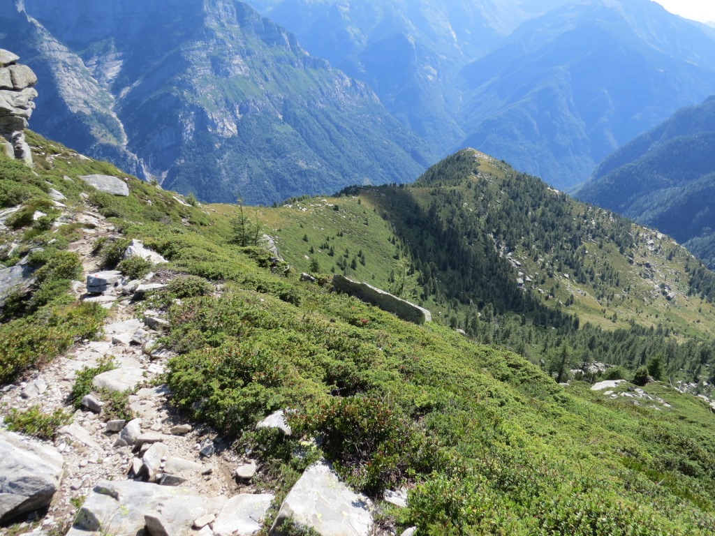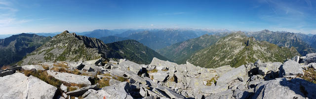 sehr schönes Breitbildfoto vom Grat aus aufgenommen, mit Blick Richtung Valle Maggia. Ganz links der Madom da Sgióf
