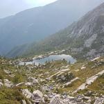 tief unter uns der Lago del Starlaresc mit der gleichnamigen Capanna