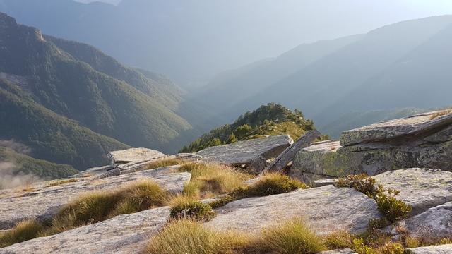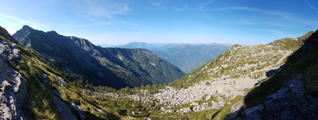 schönes Breitbildfoto mit Blick über das Valle del Salto hinaus zu den unzähligen Tessiner Bergen