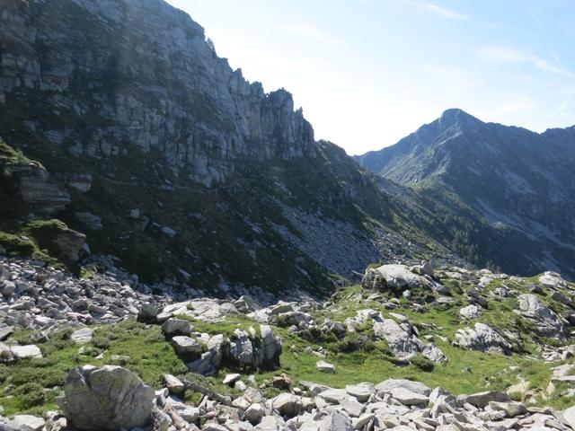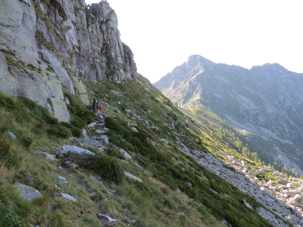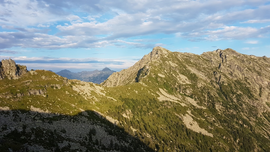 linkerhand erkennen wir den Passo Deva und weiter oben der Madom da Sgióf, den wir am nächsten Tag besuchen werden