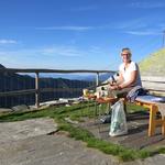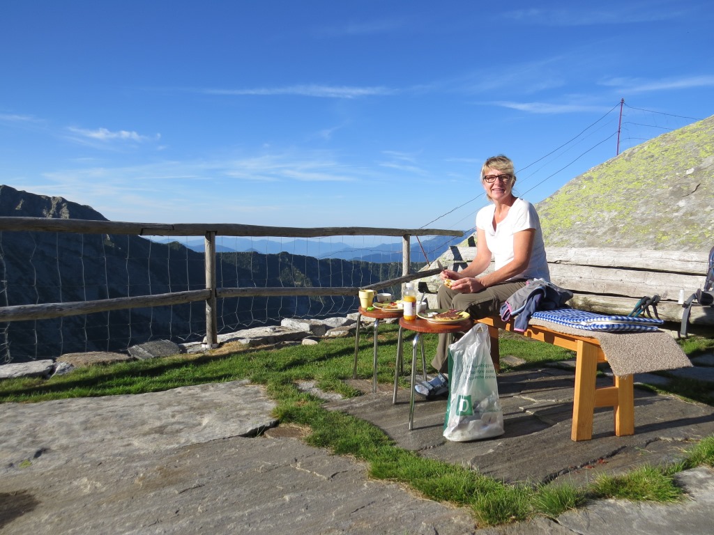am nächsten Tag, geniessen wir draussen, bei prachtvollem Wetter das Frühstück