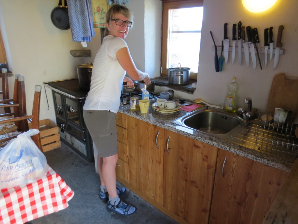 ...und schöner Küche, wird der Ofen für das Nachtessen angefeuert