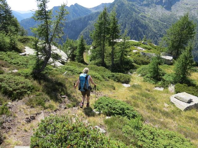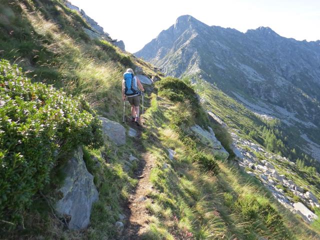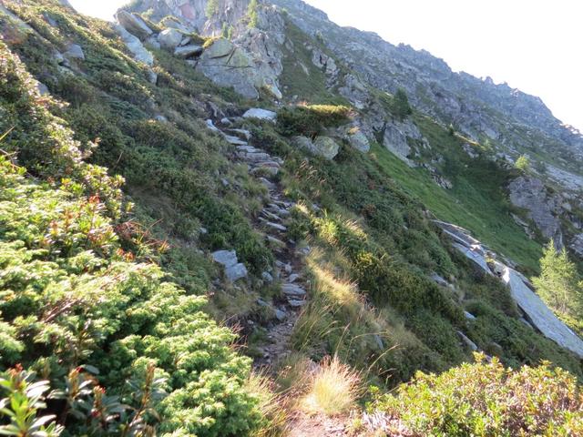 ...geht es über einen guten Pfad hinauf Richtung Passo Deva