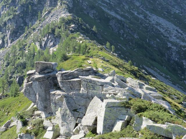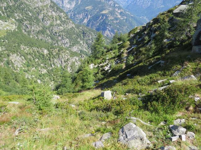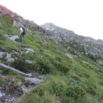 ...und steigen auf einem breiten Grasrücken, später verkrautet, weiter abwärts