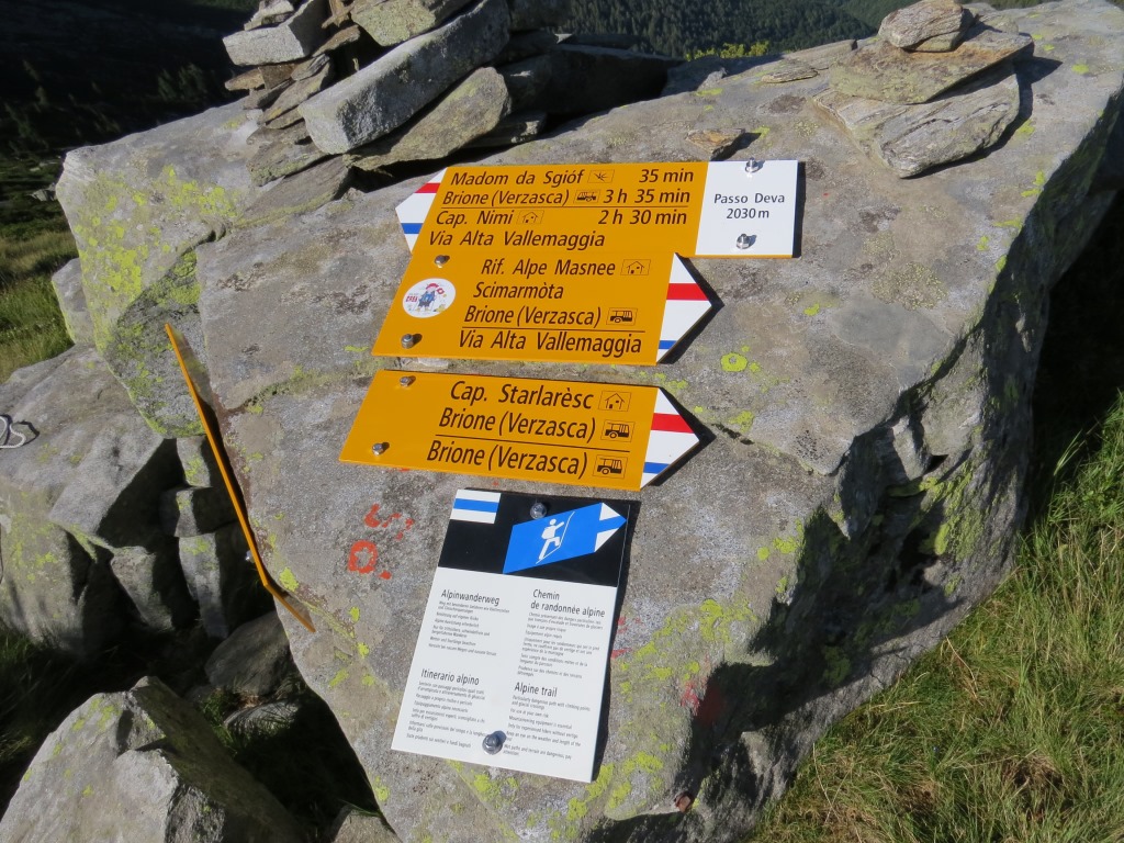 Wegweiser beim Passo Deva 2036 m.ü.M.