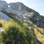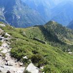 nach kurzer Zeit verlässt der Bergpfad den Nordwestgrat und führt uns eher rechtshaltend...