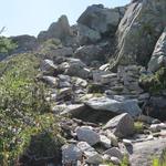 ...über einige leicht exponierte Steilstufen mit Blöcken aufwärts