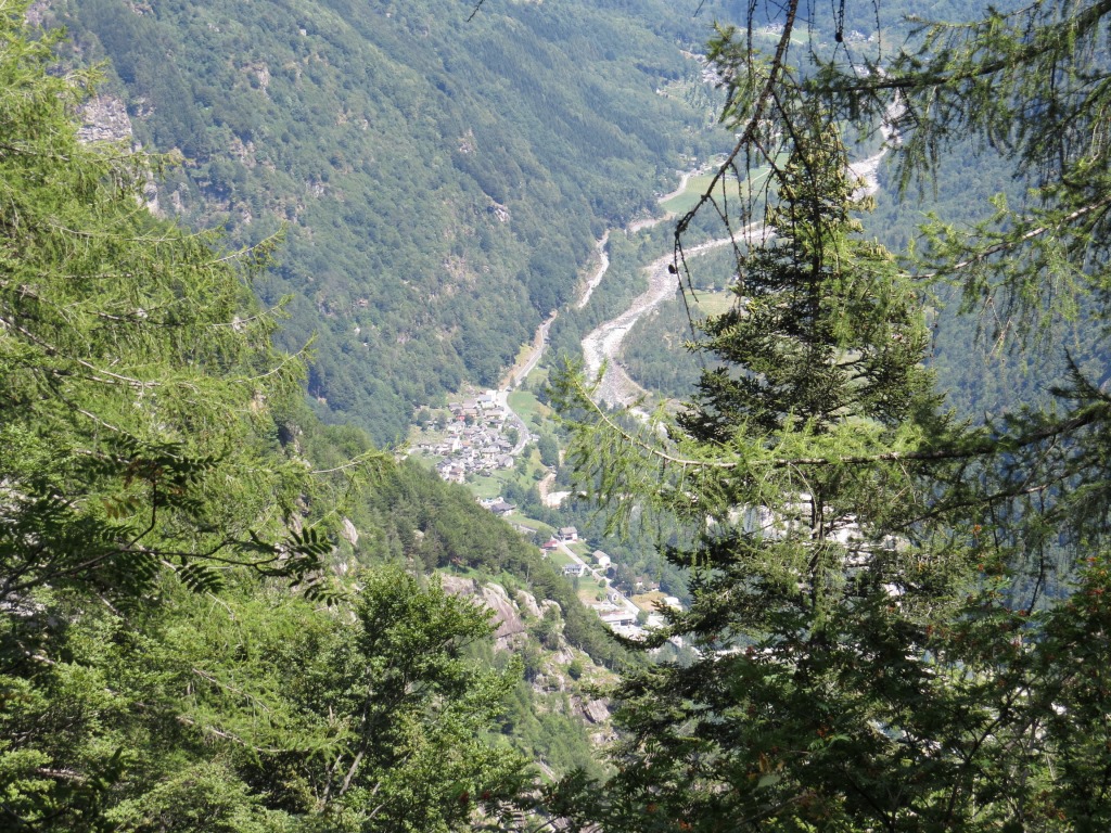 Tiefblick ins Verzascatal. Noch viele Höhenmeter sind zu bewältigen, bis wir dort im Talboden stehen werden