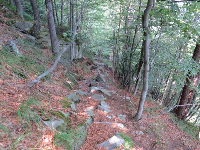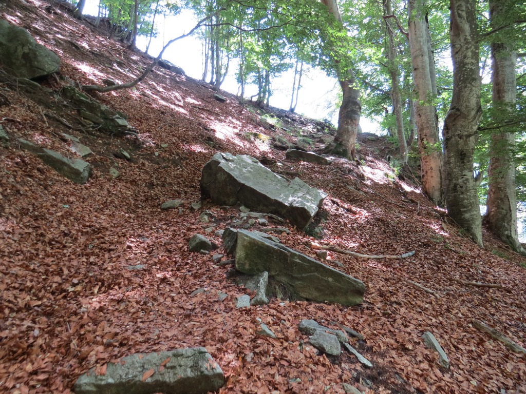 wir durchlaufen den Wald bei Brusada 1320 m.ü.M. Zahlreiche kleine Bachläufe werden überquert