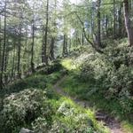 ...um danach rechts abbiegend durch den schönen Lärchenwald abwärts