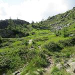wir folgen den nur noch schwach erkennbare Bergpfad...