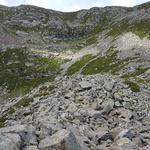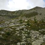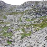 über Geröll und Buschwerk steigen wir mühsam hinauf Richtung Tschawinerpass