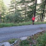 die grossen Schleifen der Forststrasse abkürzend, geht es schnell abwärts