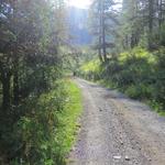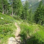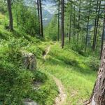 ...um danach rechts abbiegend durch den schönen Lärchenwald abwärts