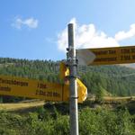 Wegweiser beim Parkplatz unser erstes Ziel lautet Tschawinersee