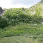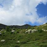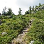 über Geröll und Buschwerk steigen wir mühsam hinauf Richtung Tschawinerpass