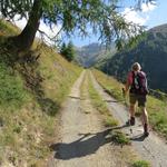...auf einem gut ausgebauten Weg Richtung Süden, durch sehr schöne Lärchenwälder...