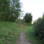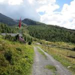 wir erreichen eine Weggabelung, links geht es zur Saflischmatte. Wir wandern weiter geradeaus