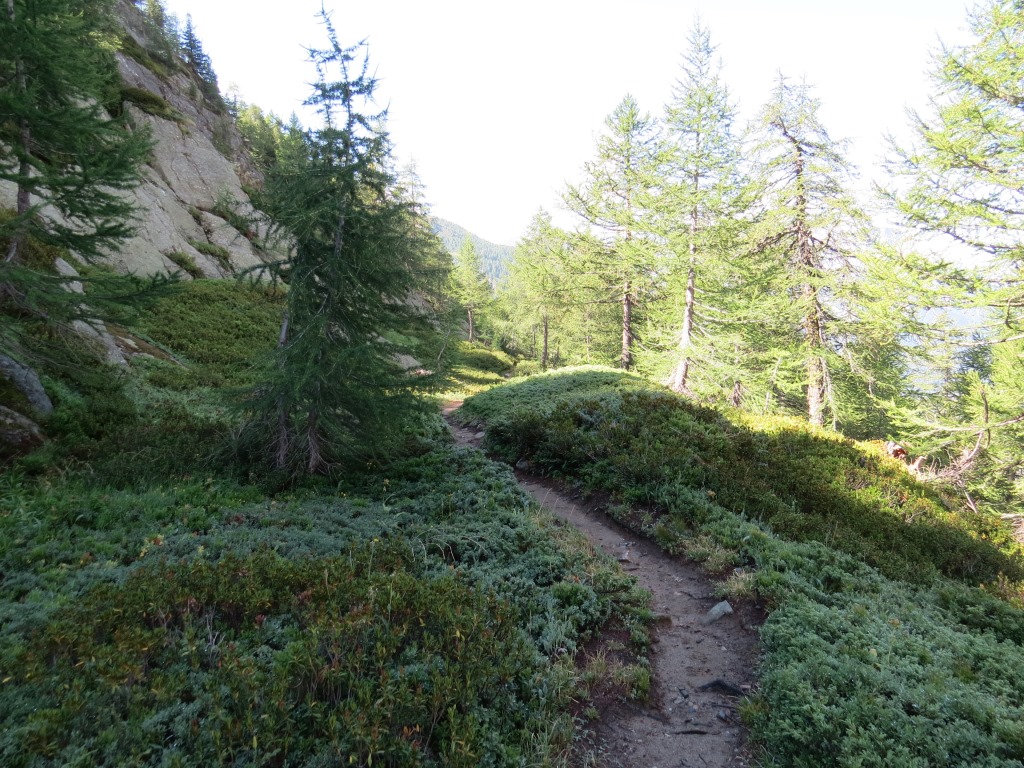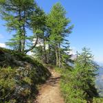 ganz sanft aufsteigend wandern wir anschliessend durch den weiterhin schönen Lärchenwald...