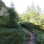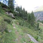 rechtshaltend durchlaufen wir nun unterhalb der Wasenalp einen schönen Lärchenwald