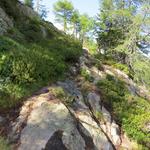 nach der Querung des Baches folgt ein steiler, verstrauchter und auch felsig durchsetzter Bergpfad