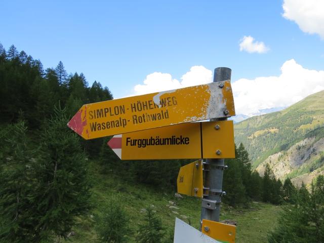 Wegweiser bei Rosswald 1821 m.ü.M. Über den Simplon-Höhenweg werden wir die Bortelhütte besuchen