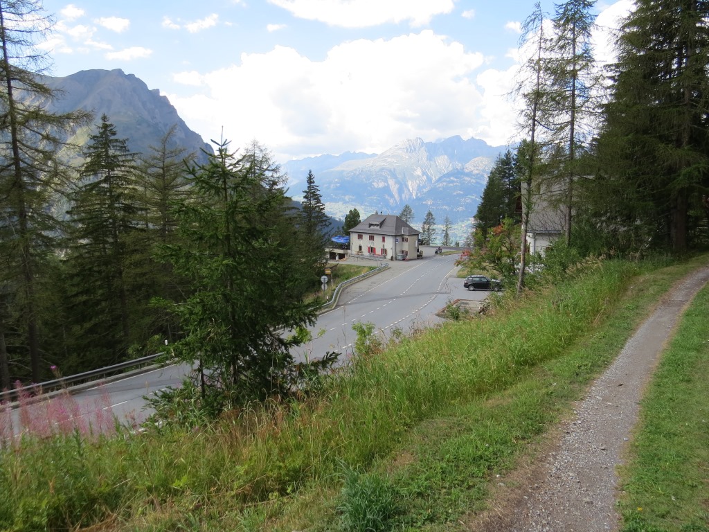 in einigen Kehren führt die Strasse durch den Wald hinunter zur Simplonpassstrasse