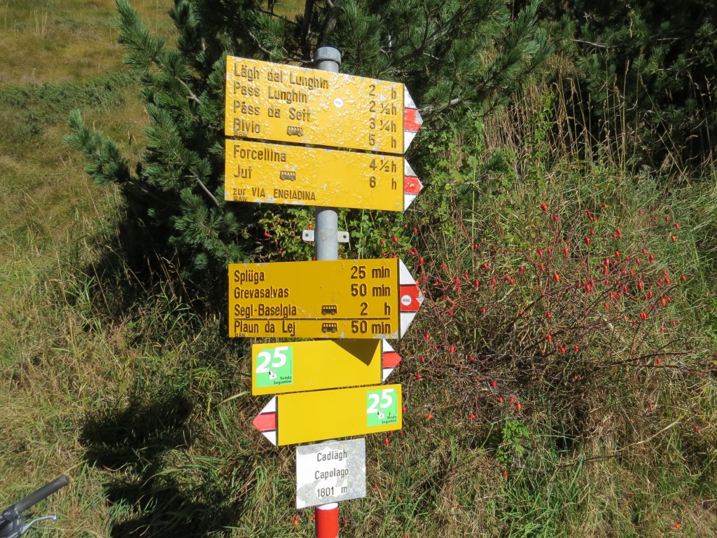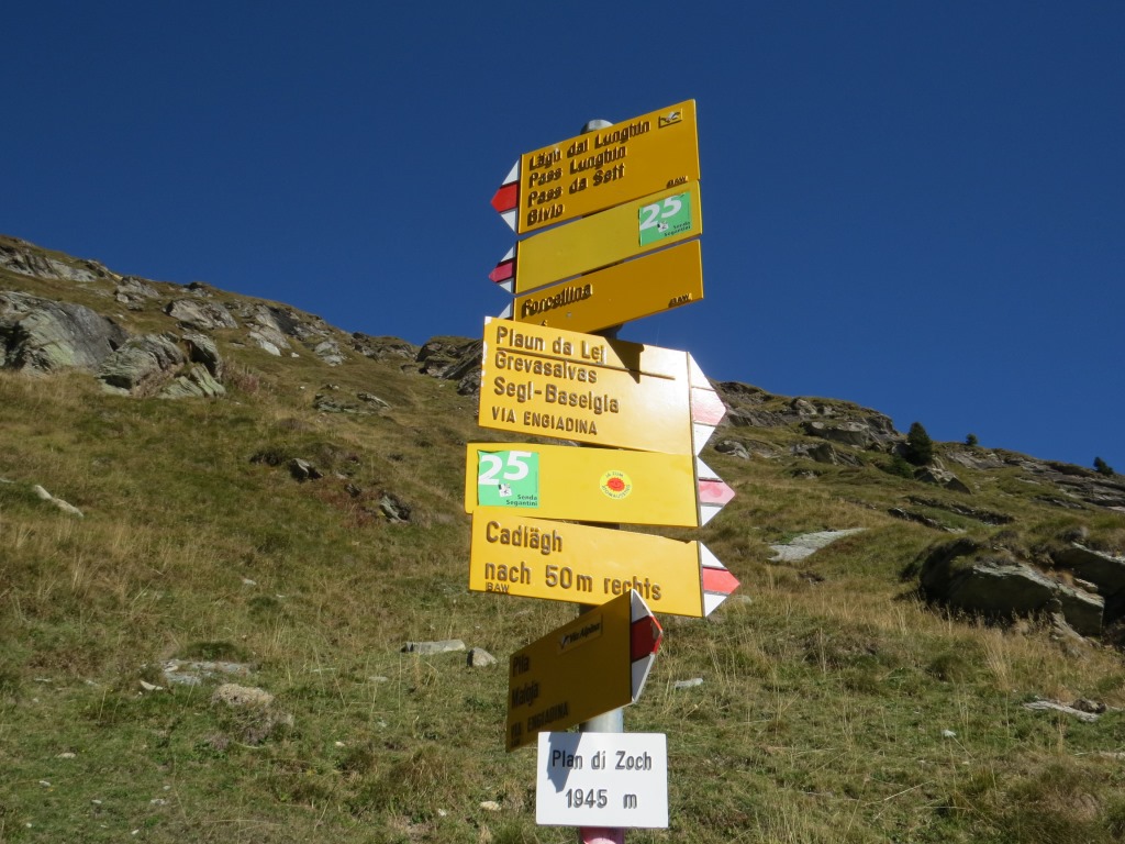 bei Plan di Zoch stossen wir auf die Via Engiadina und gleichzeitig auf eine Weggabelung 1944 m.ü.M.