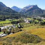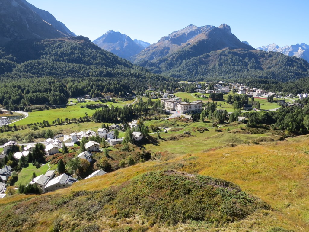 dabei bietet sich immer ein schöner Blick hinab auf Maloja mit dem auffälligem Hotel Palace