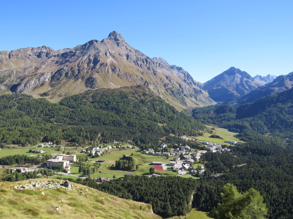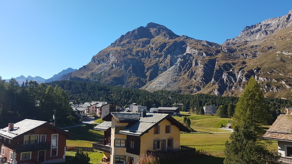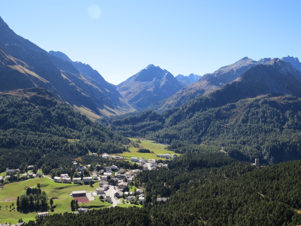 als krönender Abschluss diese Aussicht. Vom Friedhof wo Segantini begraben ist, sieht man den Piz Lunghin