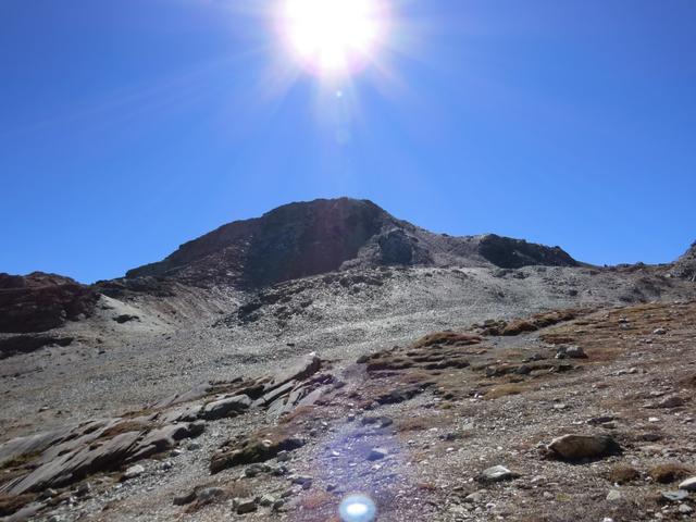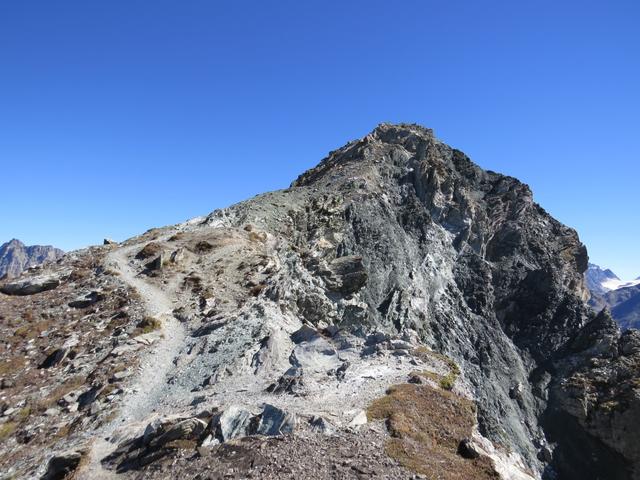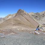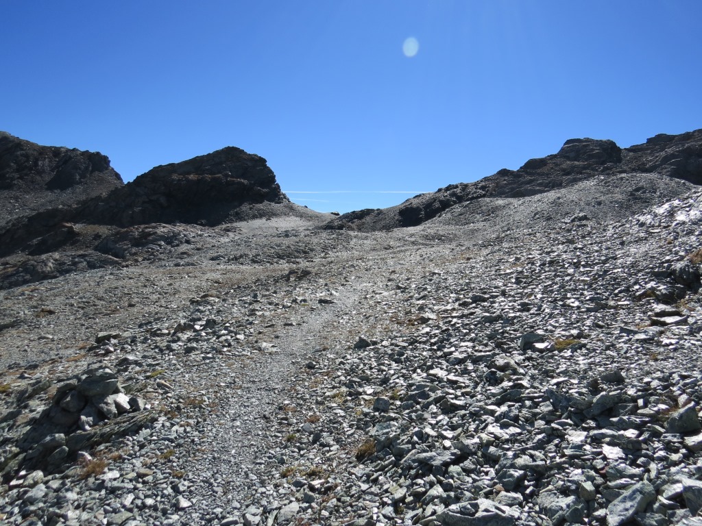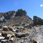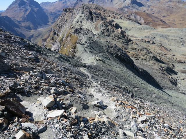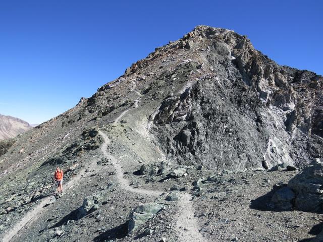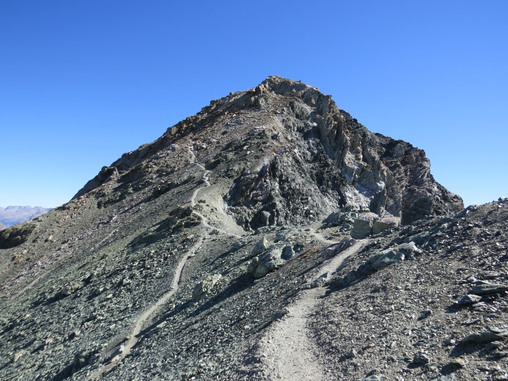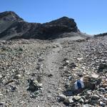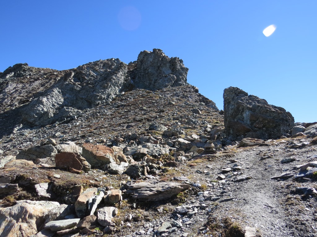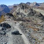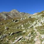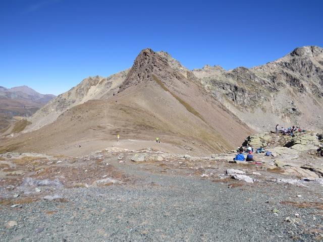 vom Pass aus ist der Pfad auf dem Gipfel des Piz Lunghin bereits sichtbar,...