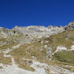 in vielen Kehren 2083 m.ü.M. steigen wir über die weitläufige Flanke weiter aufwärts