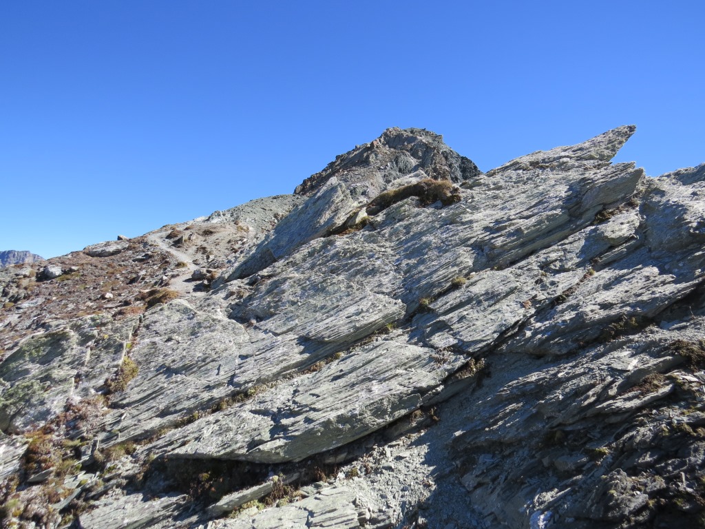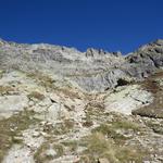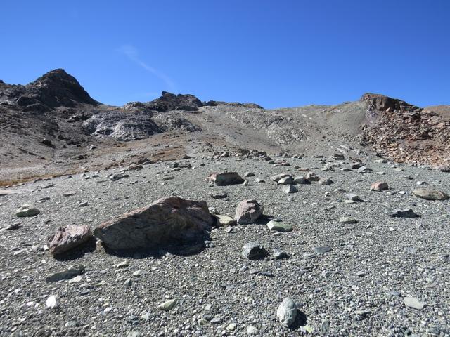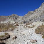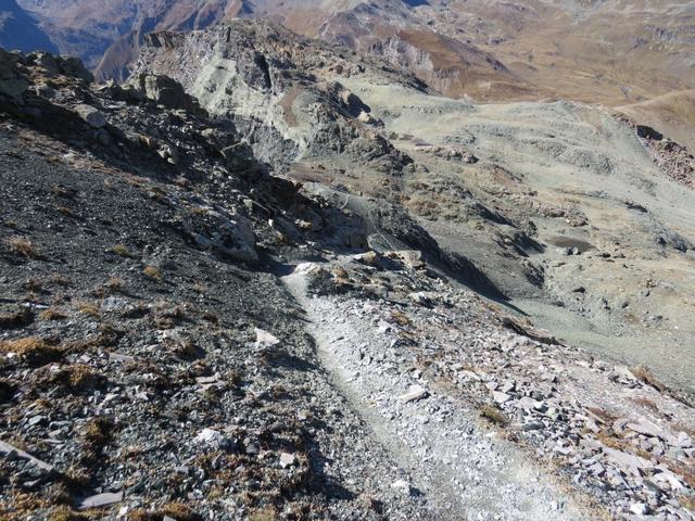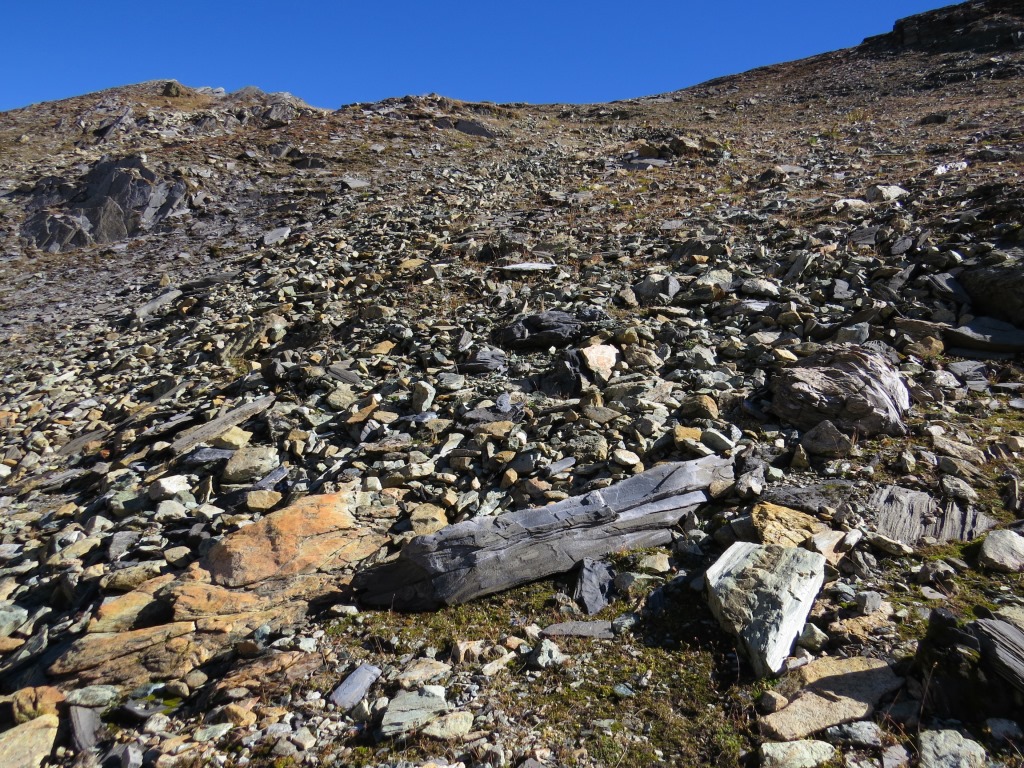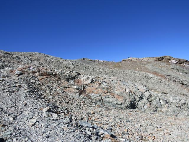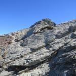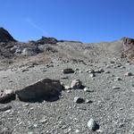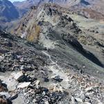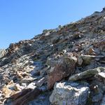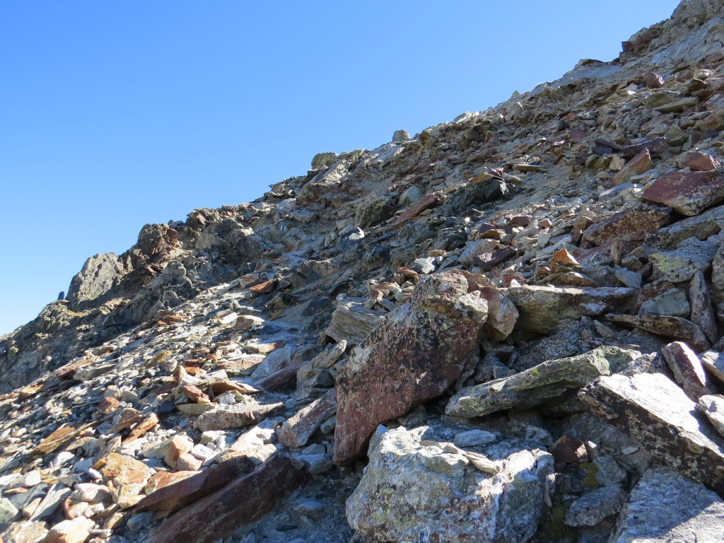 hier oben besitzt das Geröll nicht nur die Farbe Grau. Die Farben Rot, Braun, Gelb und Schwarz sind ersichtlich