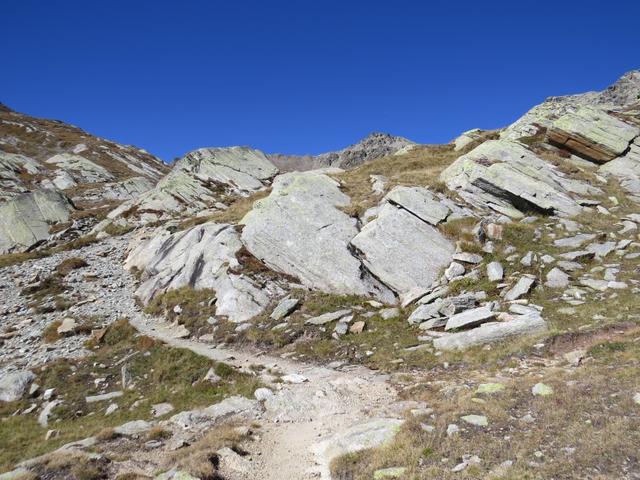 wir wandern geradeaus weiter und folgen den Weg Richtung Pass Lunghin