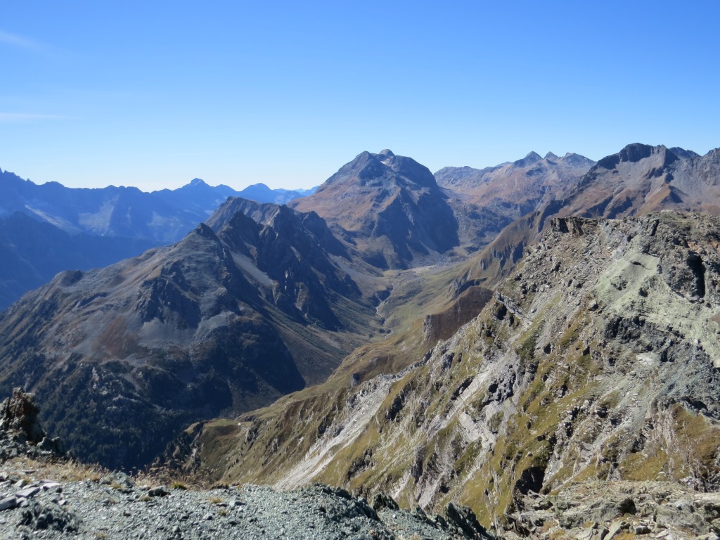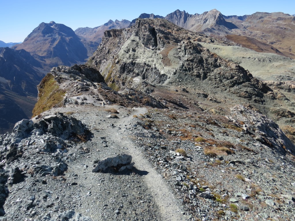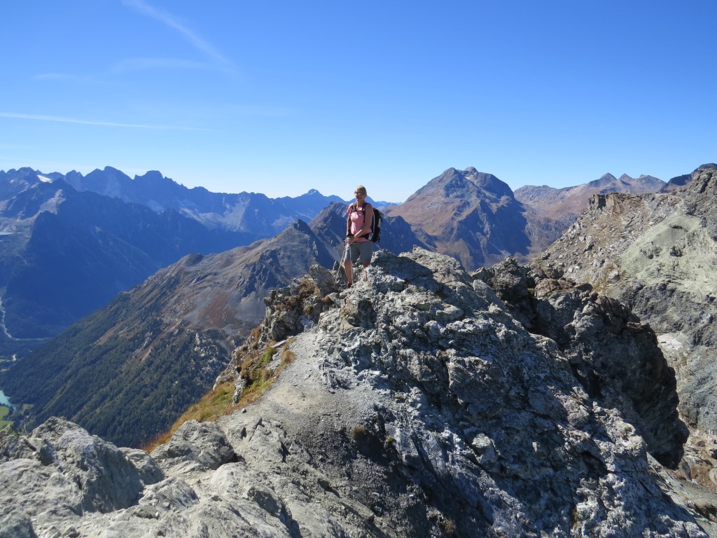 es empfängt uns ein umwerfendes Panorama. Hier mit Blick Richtung Norden zum Piz Grevasalvas