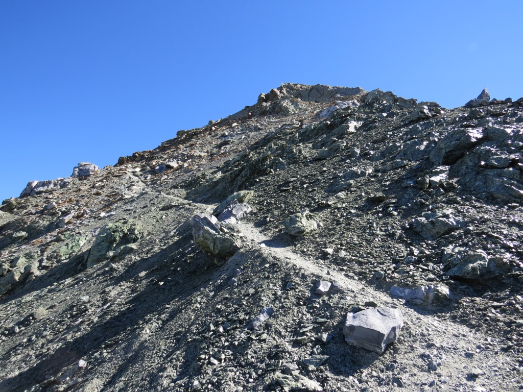 Trittsicherheit ist hier kurz unterhalb des Gipfels von Vorteil