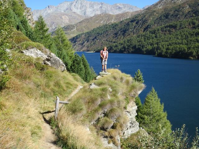 ...und auf die eindrucksvolle Bergumrahmung zu geniessen. Gut ersichtlich die Albigna Staumauer