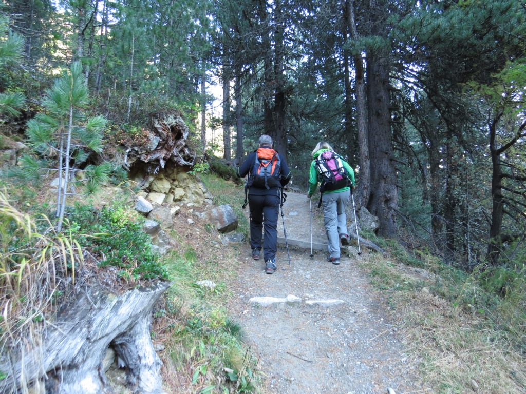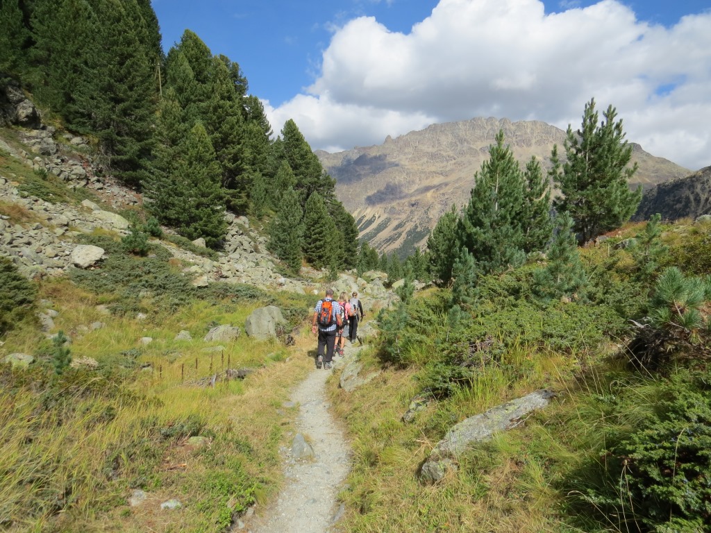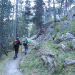 am Taleingang des Val Morteratsch führt uns der Weg zuerst durch ein Wäldchen Datum 02.02.2021