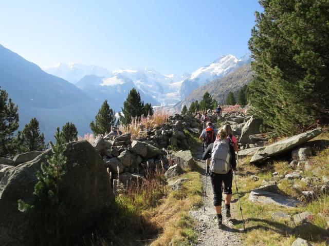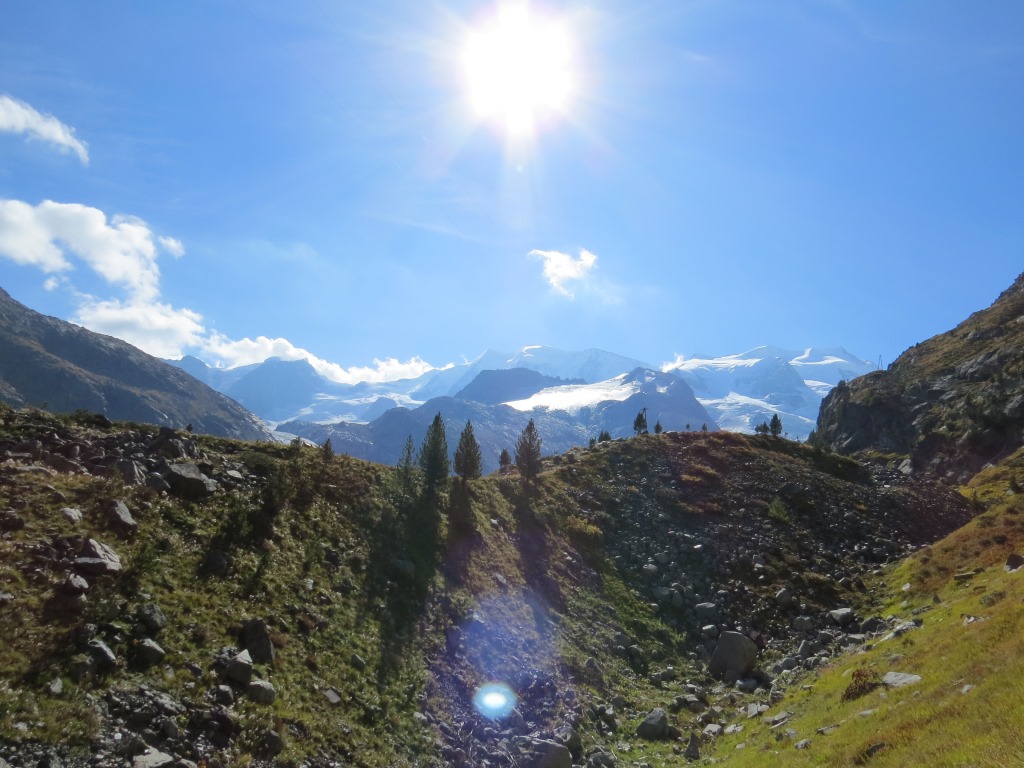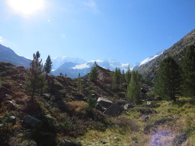 was für eine schöne Aussicht ins Val Morteratsch. Am Horizont erkennt man den Piz Languard Datum 03.02.2021