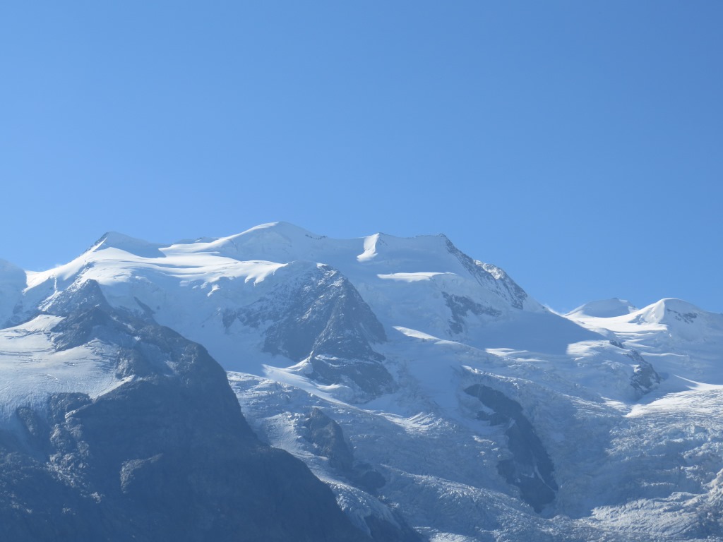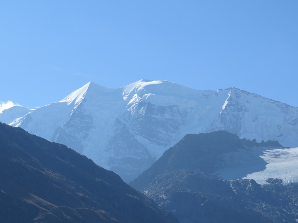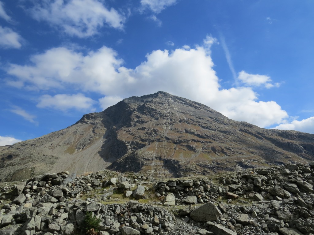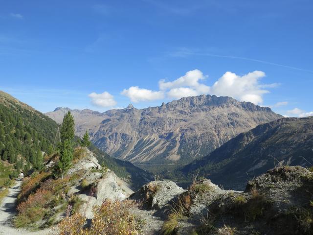 rechts von uns ragt der Munt Pers in den blauen Himmel Datum 03.02.2021