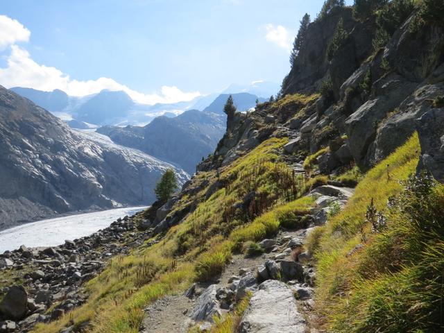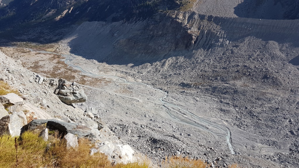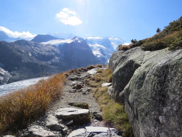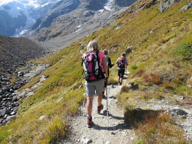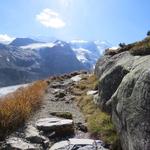 der Hüttenweg folgt nun ab jetzt dem riesigen Moränenwall Datum 03.02.2021