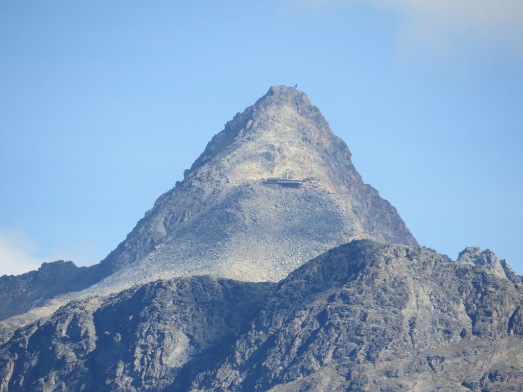 der Piz Languard herangezoomt. Gut zu sehen Georgys Hütte. Auf diesem Gipfel standen wir auch schon Datum 03.02.2021