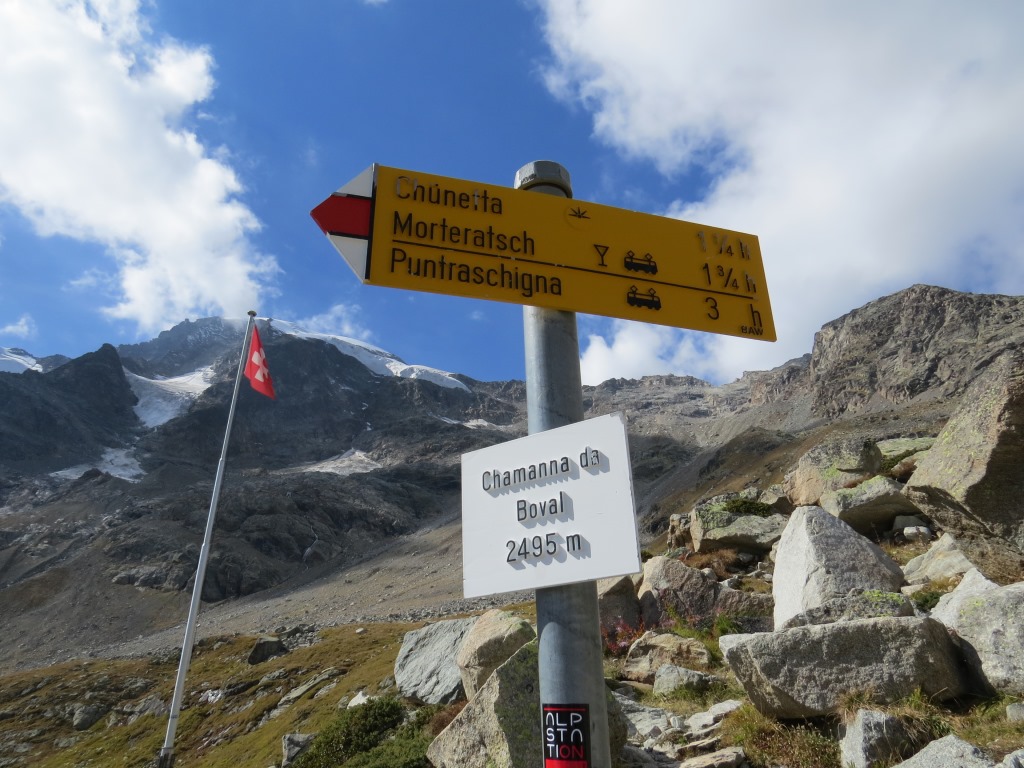 Wegweiser bei der Chamman Boval 2495 m.ü.M. Datum 03.02.2021