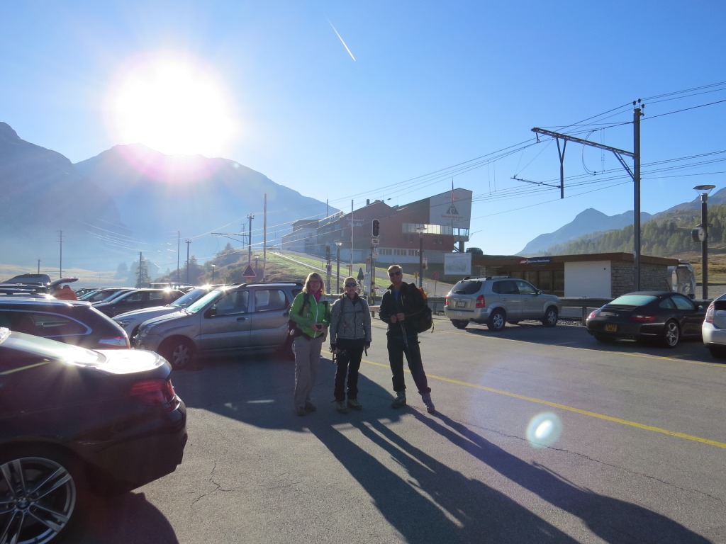 ...und fahren mit dem Auto kurz vor dem Berninapass, zur Bergstation der Diavolezza Seilbahn Datum 04.02.2021