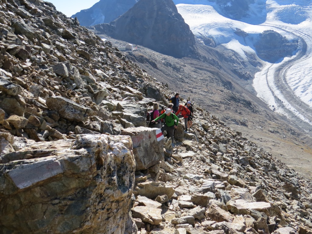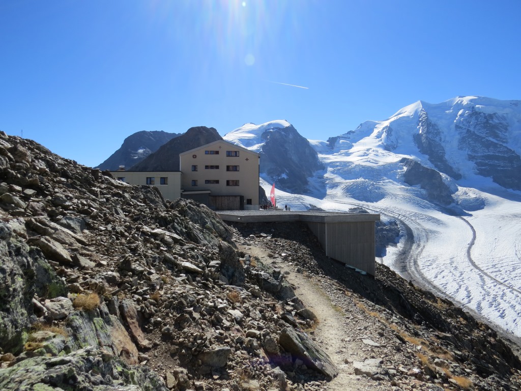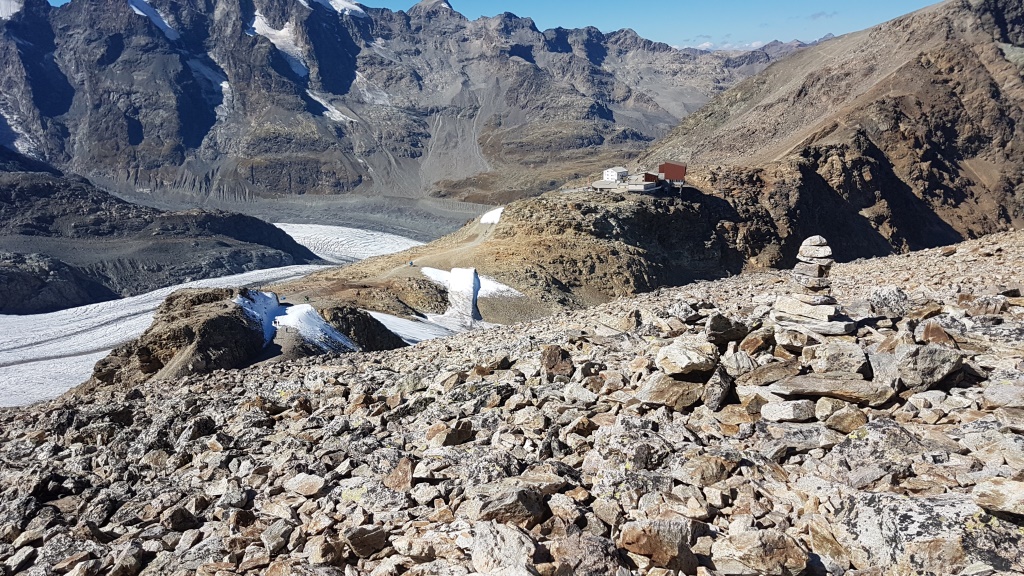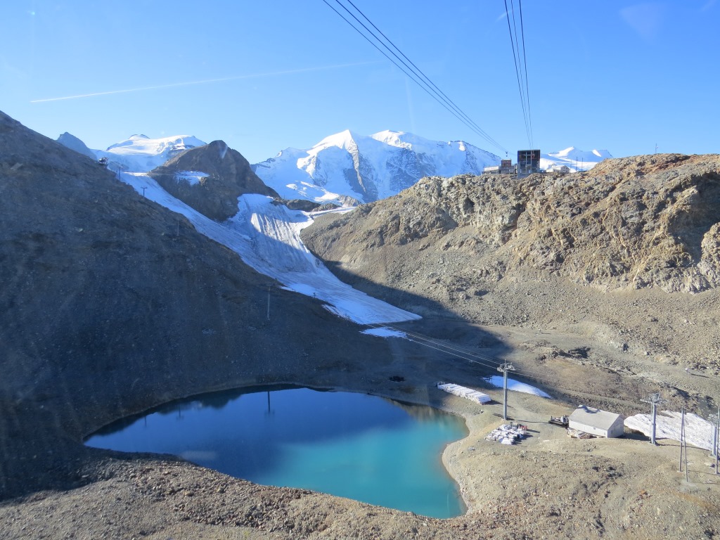 wir laufen nun zur Bergstation Diavolezza zurück, das von hier oben gut ersichtlich ist Datum 13.02.2021
