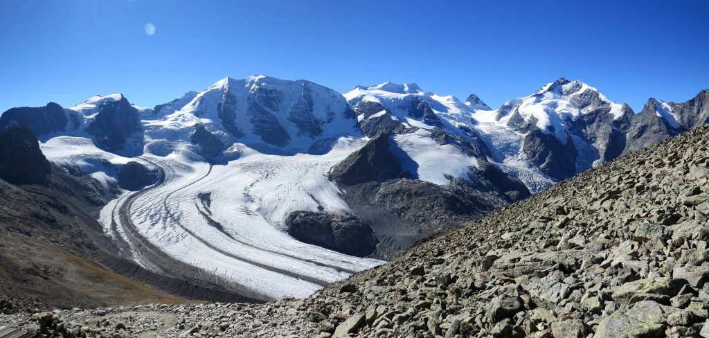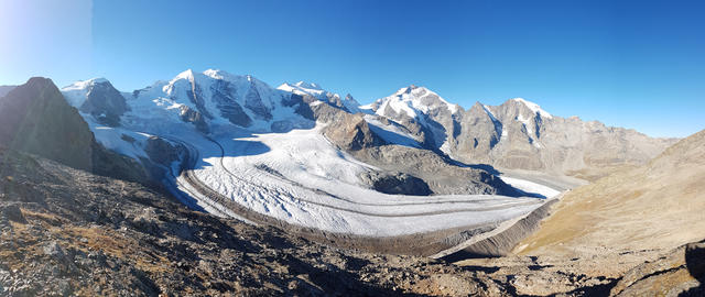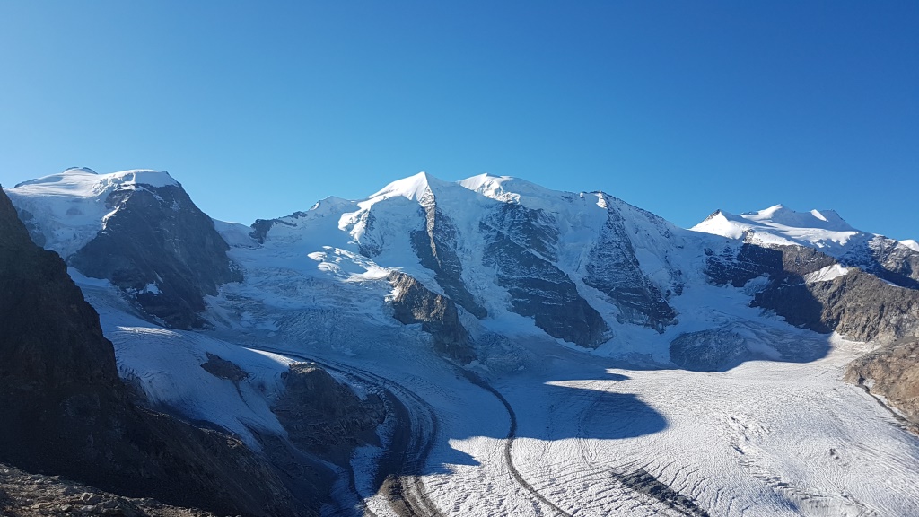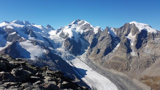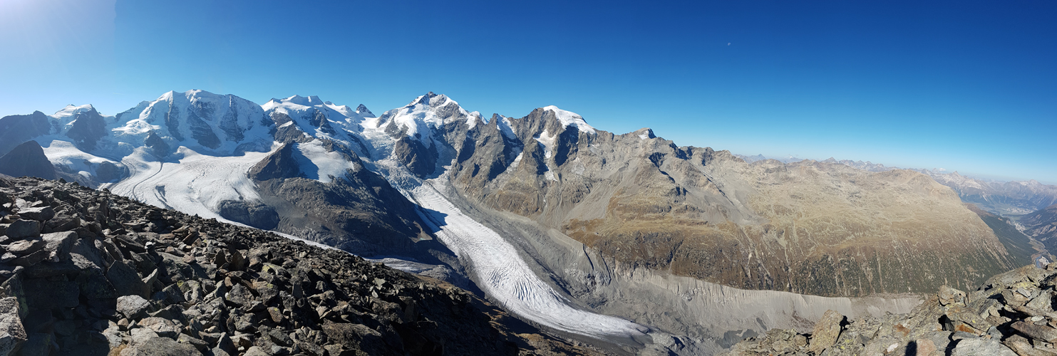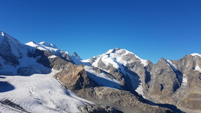 Piz Cambrena, Piz Palü, Bellavista, Crast'Agüzza und Vadret Pers. Es verschlägt einem fast den Atem Datum 12.02.2021