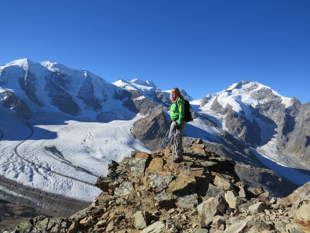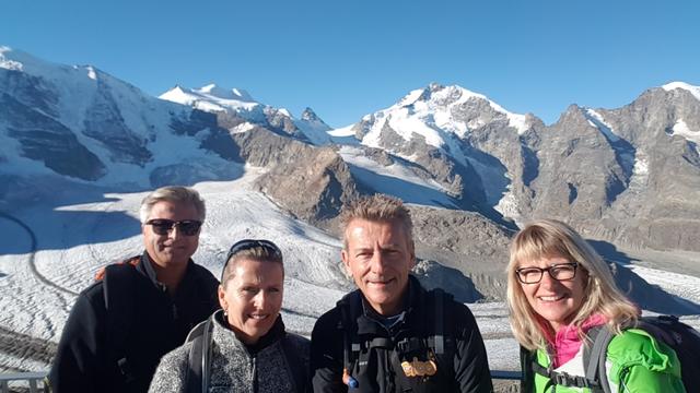 Crast'Agüzza, Piz Bernina, Piz Morteratsch, meine Maus und Uli Datum 11.02.2021